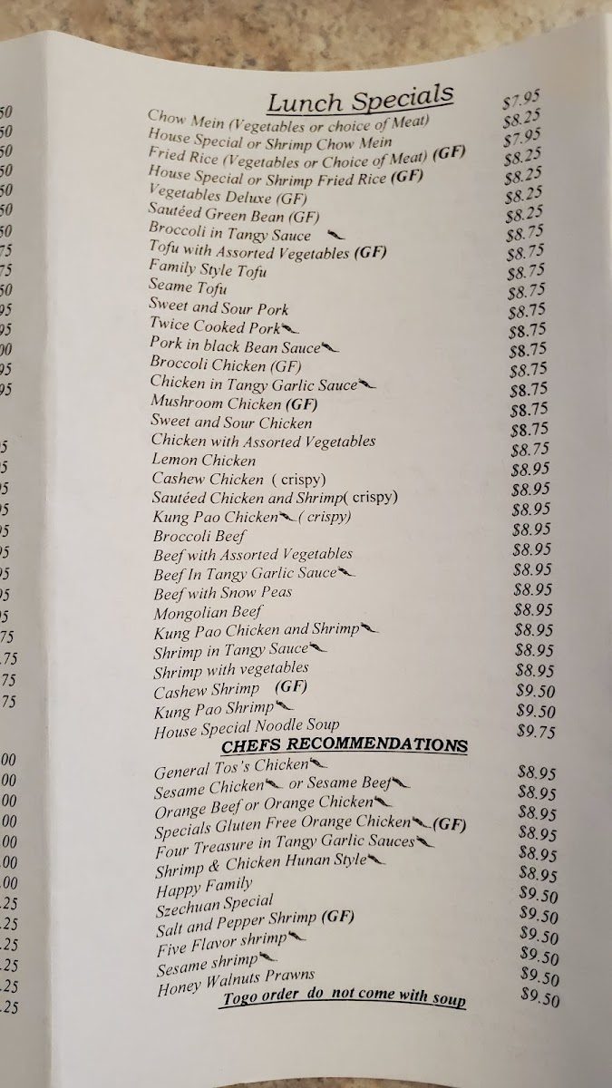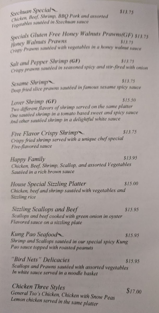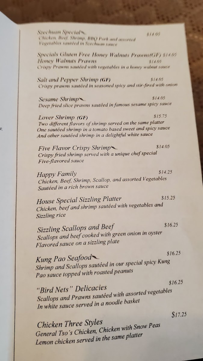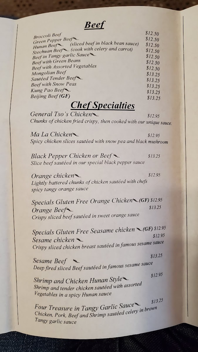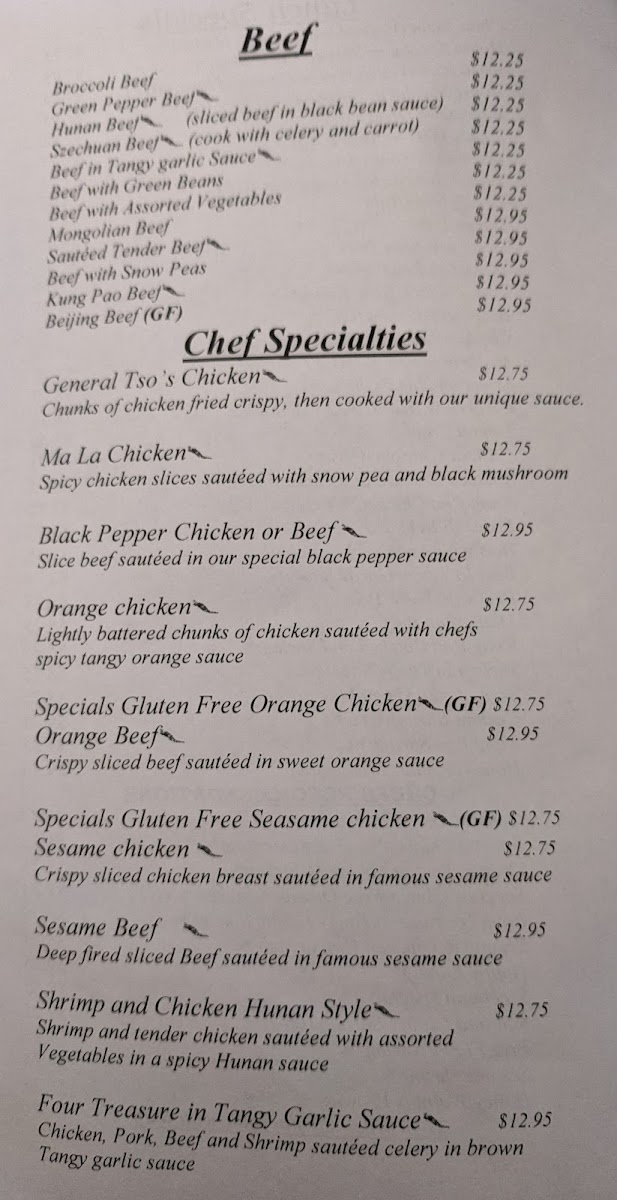 From a reviewer’s perspective, the menu at Szechuan Open Kitchen feels thoughtfully curated, focusing on familiar Chinese-American favorites while still offering enough variety to keep the experience satisfying from start to finish. The selection of appetizers and soups sets a comforting tone, with Wonton Soup, Hot and Sour Soup, and Egg Flower Soup each delivering a distinct balance of warmth and flavor, while Spring Rolls provide a crisp, reliable start. For heartier bites, Big Potstickers stand out as a filling and well-loved option, ideal for sharing. Moving into the main dishes, the menu leans confidently into bold, crowd-pleasing profiles: Orange Chicken offers the expected sweet-and-tangy contrast, while Beijing Chicken GF is a welcome gluten-free option that doesn’t compromise on taste. Protein-forward dishes like Beijing Beef and Mongolian Chicken showcase savory sauces and satisfying textures, appealing to diners who enjoy rich, wok-style cooking. Seafood lovers are not overlooked, as Five Flavor Shrimp brings a layered, aromatic profile that adds depth to the lineup. Traditional stir-fry classics such as Mu Shu Pork round out the menu, reinforcing its emphasis on variety and balance. Overall, the menu feels cohesive and approachable, highlighting recognizable dishes executed with consistency, making it easy to understand why these items remain the restaurant’s standouts.